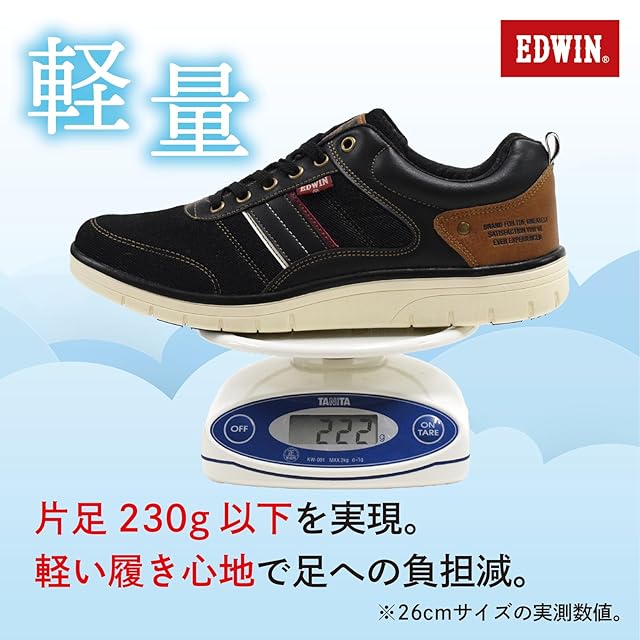 [エドウイン] カジュアルスニーカー カジュアルシューズ ストレッチ 素材 軽量 靴ひも おしゃれ ストレッチ素材 シンプル EDW-7643 メンズ ブラック 25.0 cm 3E
