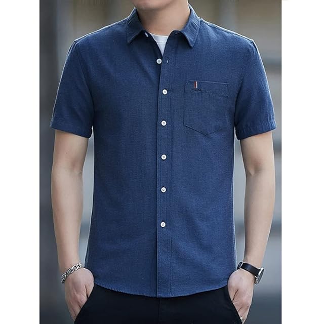 [Aaronlive] シャツ メンズ 夏服 半袖 カジュアル 無地 シャツ 柔らかい かっこいい ワイシャツ 快適な 軽い レギュラーフィット メンズ シャツnavy M