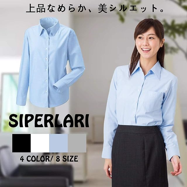 [SIPERLARI] ブラウス シャツ レディース 通勤 長袖 就活 オフィス シャツ 可愛い 形態安定 カジュアル おしゃれ 着痩せ 黒 白 ビジネス レギュラー シャツ スキッパーシャツ(ライトブルー 35)