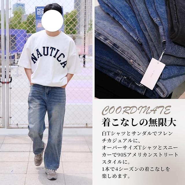 【着こなしの無限大】白Tシャツとサンダルでフレンチカジュアルに、オーバーサイズTシャツとスニーカーで90sアメリカンストリートスタイルに。ロングコートの下から裾を覗かせるレイヤードスタイルなど、1本で4シーズンの着こなしを楽しめます。体型やシーンに合わせて自由にアレンジ可能です。