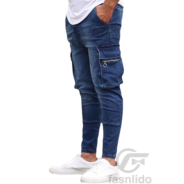 [F fasnlido] デニムパンツ メンズ スキニージーンズ カーゴパンツ ストレッチ 大きいサイズ M-3XL ボタン付き コットン 春夏秋 カッコいい (ブルー, L)
