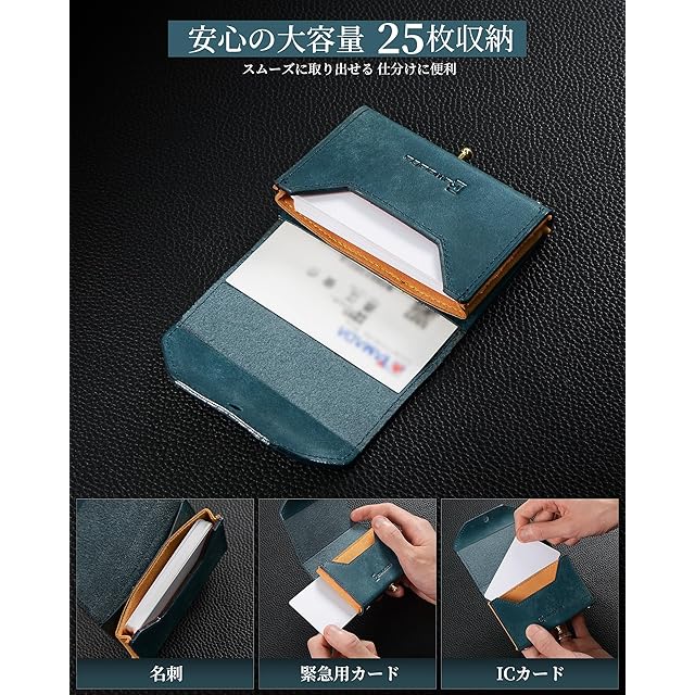 【名刺入れ 薄型】メンズ名刺入れはスリムながらしっかり収納できる構造で、25~30枚の名刺が収納可能で収納後の薄さはわずか2cmです。サブポケット付いて、ご自分の名刺とICカードを分けて収納することができます。初対面のビジネスミーティング、懇親会、商談、展示会などビジネスシーンにおいて欠かせない名刺入れです。