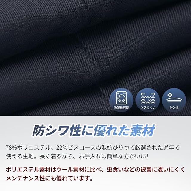 【商品特徴】ポリエステルとビスコース繊維の混紡生地で、スーツセットはドレープ感があり、着用で不収縮で、シワにくいです。抜群の肌触りと着心地を実現。軽い質感のために、洗いやすいし、干しやすいです。