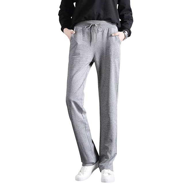 [Rovidorx] スウェットパンツ レディース 綿100 ズボン ロングパンツ ボトムス ワイドパンツ カジュアル 美脚 無地 春秋 ポケット付き 体型カバー Royc081-dgr-2XL(=日本サイズXL)