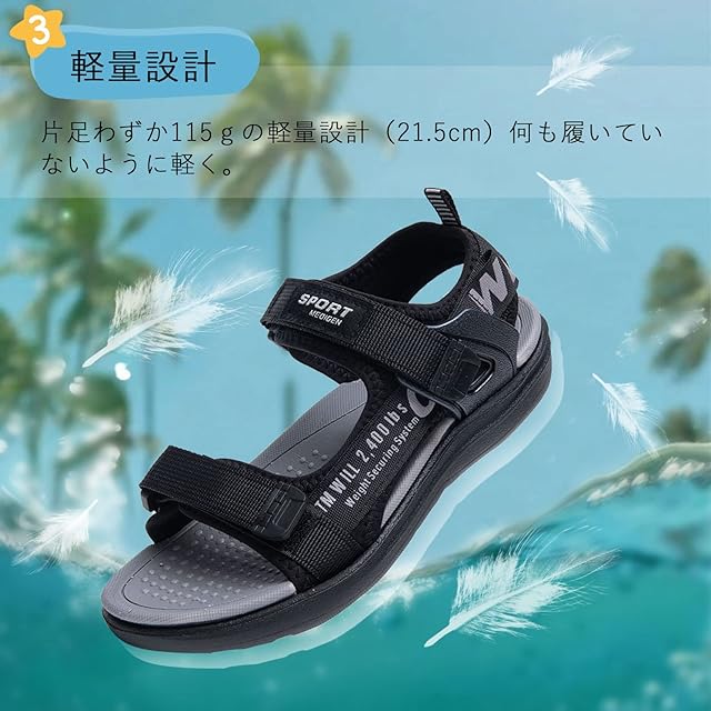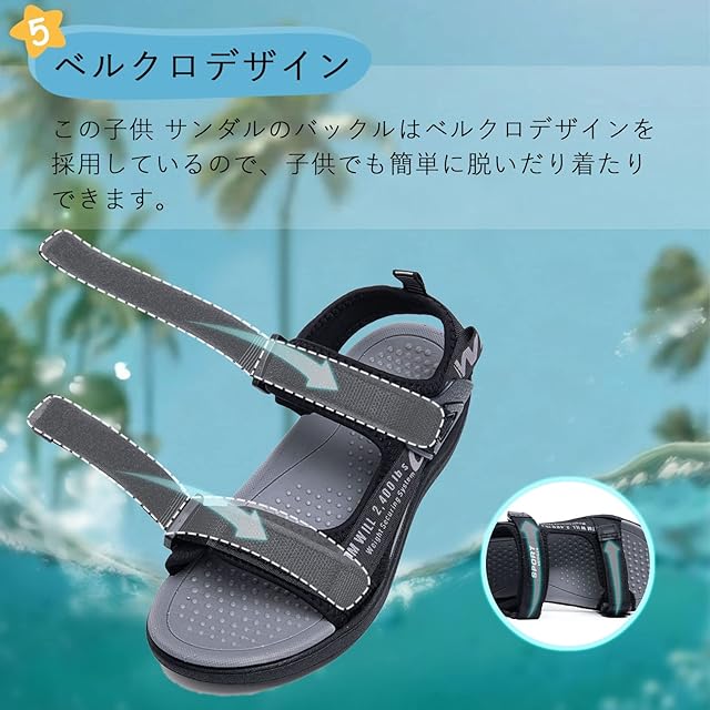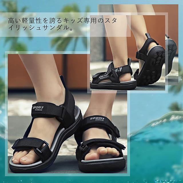 [FFIBU] サンダル 男の子 子供 キッズサンダル スポーツサンダル 水陸両用 子供用サンダル ビーチサンダル 子ども ジュニア 履きやすい おしゃれ 滑り止め 黒い 20.5cm