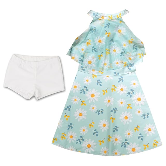 [Teddy] キッズ 水着 女の子 セパレート ハイネック ワンピース ショートパンツ 2点セット ジュニア子供用 レース フリル kids279 (L:ミント×デイジー, M(100cm))