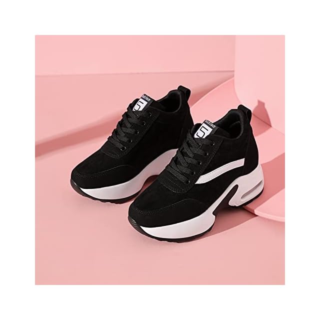 [Fainyearn] インヒールスニーカー レディース 厚底スニーカー レディーススニーカー 厚底 美脚 シークレットシューズ 厚底シューズ レースアップ 8cm厚底 ヒールアップ 軽量 身長アップ ブラック 24.0cm