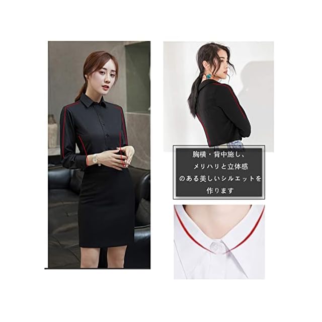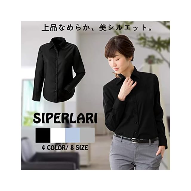[SIPERLARI] ブラウス シャツ レディース 通勤 長袖 就活 オフィス シャツ 可愛い 形態安定 カジュアル おしゃれ 着痩せ 黒 白 ビジネス レギュラー シャツ スキッパーシャツ(ブラック 36)