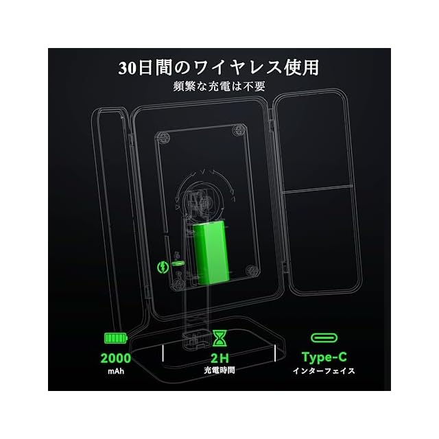 【充電式卓上スタンドミラー】大容量バッテリーが内蔵されており、頻繁な充電の手間から解放されます。化粧鏡はどこでも使用可能で、電源コンセントを気にする必要がありません。充電式デザインで、自宅だけでなく旅行にも適しているし、環境保護と便利さを兼ね備えています。