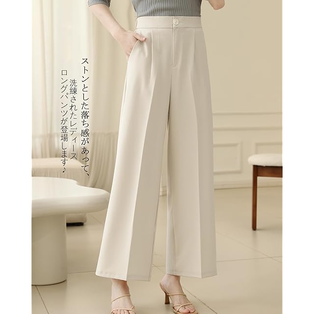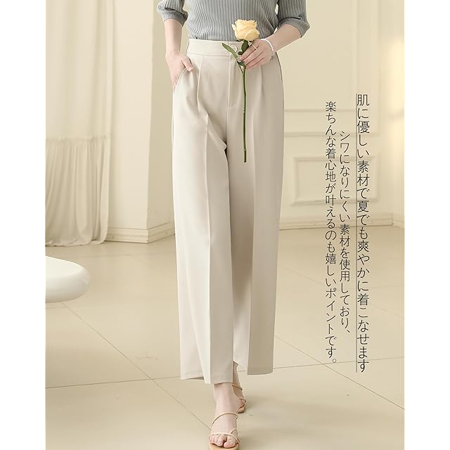 ★シンプルなデザインで、着回し力抜群なボトムスです。この一枚で大人のきれいめスタイリングを楽しませていただきます。キャミソール、ベスト、サマーニットセーターなどと合わせることでカジュアルコーディネートはもちろん、シャツ、ジャケットなどと合わせるとオフィス、通勤にも気軽に対応できるレディースワイドパンツです。3月から10月まで長い時間を着用いただけます。