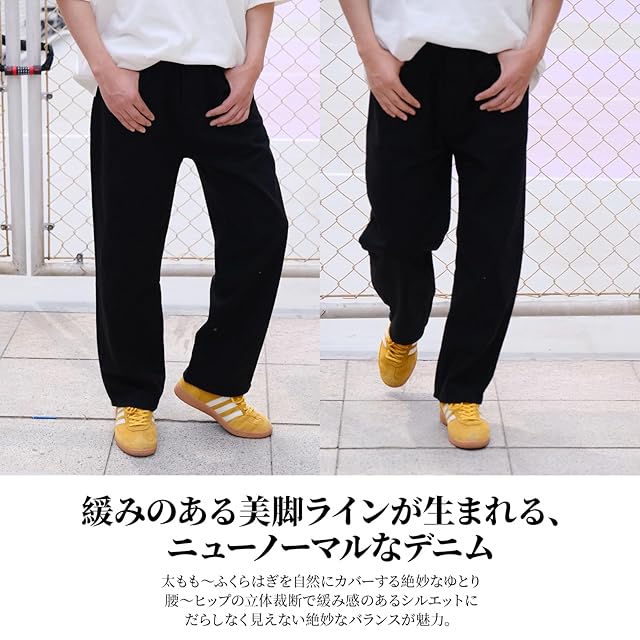 [22 Wear] ジーンズ メンズ ズボン ワイド デニムパンツ ジーパン ゆったり ルーズ ウォッシュ ダメージ (ジェットブラック M)