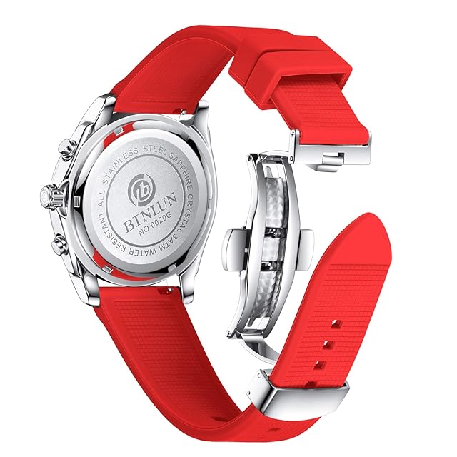 [BINLUN] 時計バンド シリコンラバー腕時計ベルト 18mm 19mm 20mm 21mm 22mm 24mm ゴム スマートウォッチベルト クイックリリース 交換用 スポーツ用 防水 男女通用 調整工具付き 8色 (レッド、24MM)