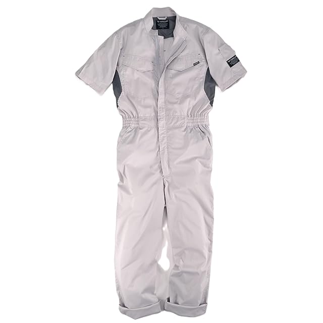 [フォーキャスト] 作業服 つなぎ夏用 吸水速乾 消臭機能 サマーソルジャーストレッチ半袖つなぎ ライトグレー LL