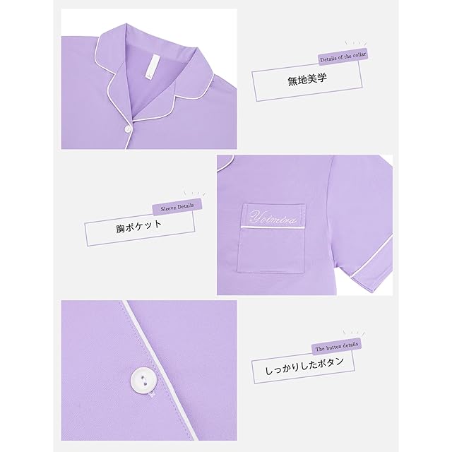 [Yoimira] パジャマ レディース 夏 ルームウェア レディース 半袖 上下セット 前開きパジャマ 部屋着 セット コットン おしゃれ