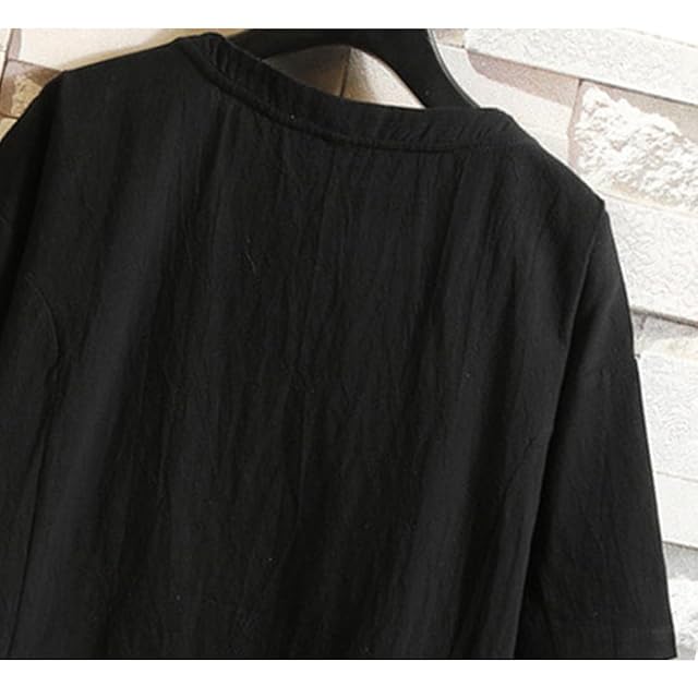 ゆったりとしたシルエットで、綿麻素材で作られた半袖tシャツは快適な着心地が特徴です。カジュアルシーンからフォーマルまで活躍する無地tシャツです。
