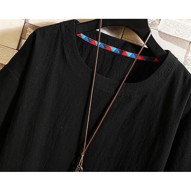 [JHIJSC] メンズ tシャツ 半袖 無地 夏 薄手 ゆったり 綿麻 おしゃれ 大きいサイズ (M, ブラック)