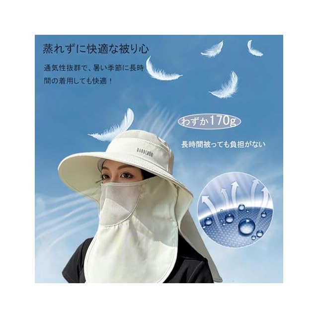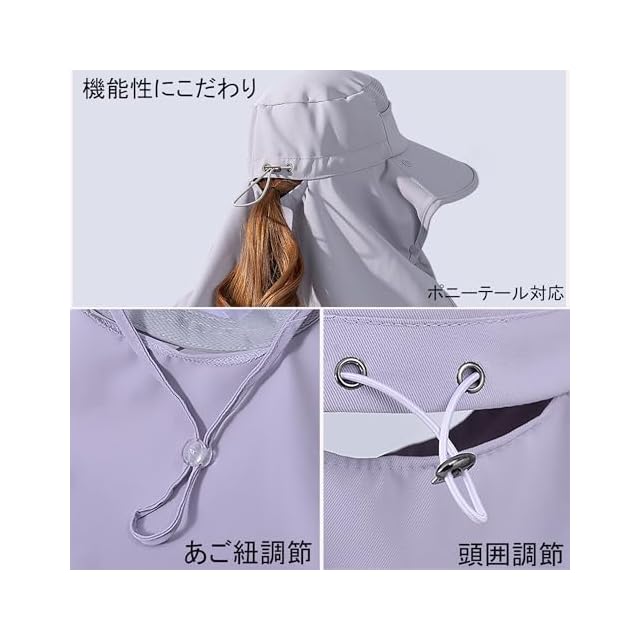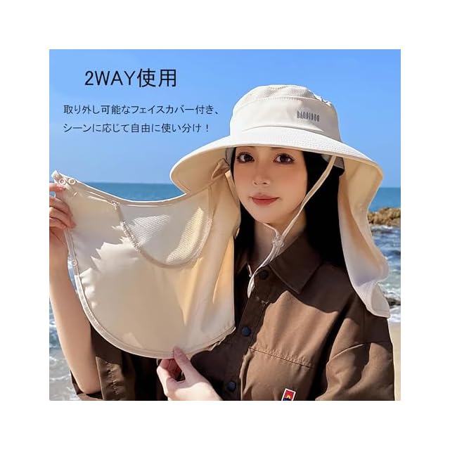 [Ycytlying] 帽子 レディース UVカット フェイスカバー付き つば広 首筋まで日焼け対策 小顔効果 折りたたみ ポニーテール穴付き あご紐 風で飛ばない 可愛い レディースハット 海 旅行 園芸 通勤 外出 春夏秋