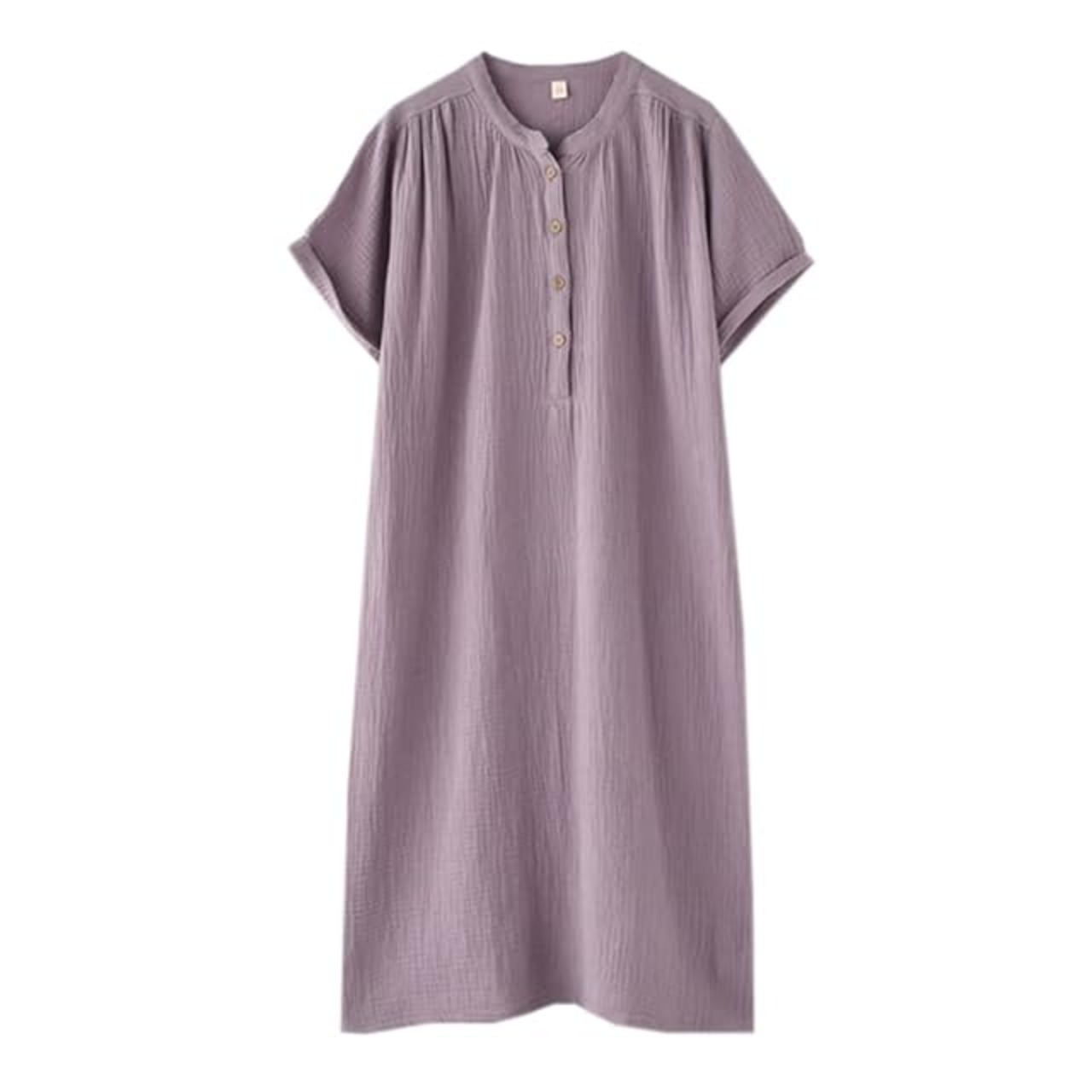 [TDIOSN] パジャマ レディース ワンピース ネグリジェ 二重ガーゼ 半袖 前半開き 柔らか 通気速乾 ルームウェア 入院 産後 マタニティ 母の日 ギフト プレゼント女性 婦人 春夏秋 (パープル, LL)