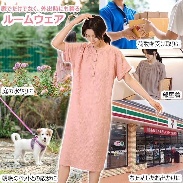 【製品仕様】:■素材:綿100%(二重ガーゼ)■カラー:ブラック、ピンク ■サイズ:M(着丈93cm 肩幅50cm バスト106cm 袖丈39cm 裾周り136cm) L(着丈96cm 肩幅51.5cm バスト114cm 袖丈40cm 裾周り144cm)