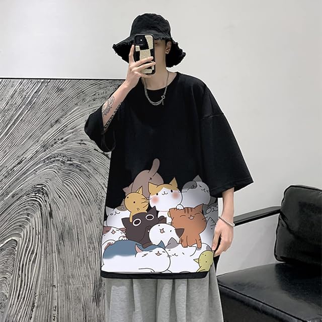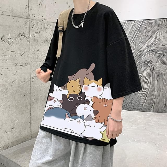[Anzn] 夏服 Tシャツ メンズ 半袖 トップス 無地 ゆったり 猫ロゴ おもしろシャツ 可愛い 大きい 丸首 かわいい 快適 人気 オシャレ 春 夏-hei-XL