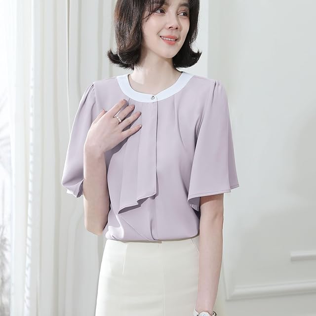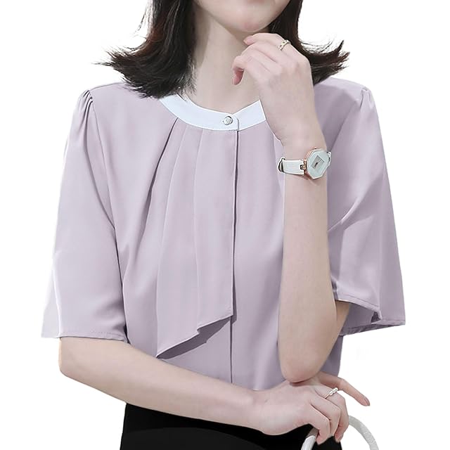 [Sueeya] スイーヤ ブラウス ボウタイ風 レディース シャツ バイカラー 半袖 トップス 着瘦せ 女性 おしゃれ エレガント 可愛い カジュアル ビジネス オフィス フォーマル 通勤 OL