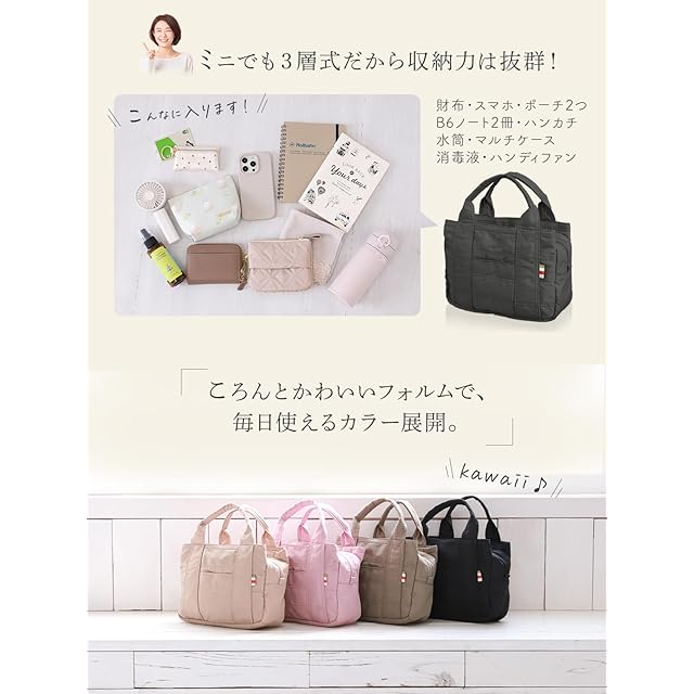 [アンコール] ミニトート レディース 【高見えミニトート】 トートバッグ 小さめ 2WAY ショルダーバッグ 軽量 機能的 使いやすい ランチバッグ 通勤 かばん マザーズバッグ 手提げバッグ ナイロン (スモーキーピンク)