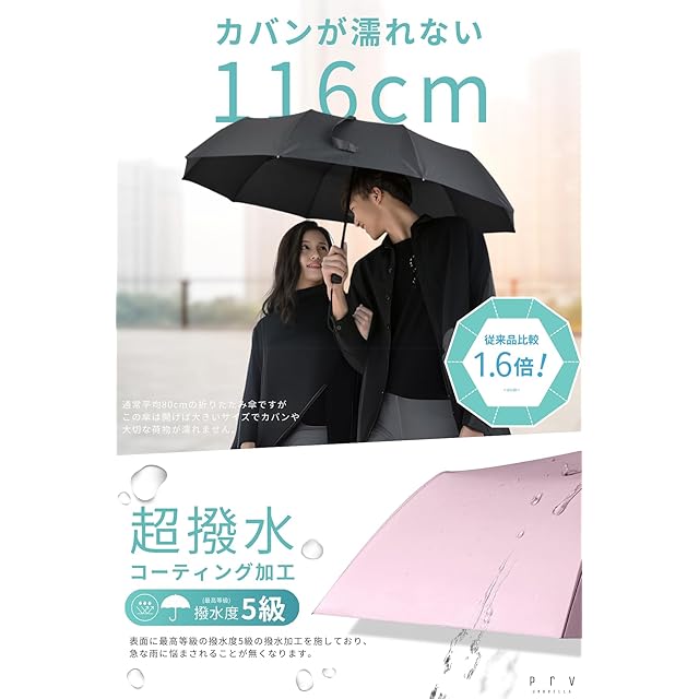 Prv【 雑誌掲載!体感温度-18.9℃ / カバンが濡れない大きさ折りたたみ傘 】晴雨兼用 雨傘 日傘 大きい 116cm 超撥水加工 自動開閉 ワンタッチ 風に強い グラスファイバー 10本骨 uvカット99% UPF50+ 遮光 遮熱 断熱 折り畳み傘 レディース メンズ 収納袋付 (ピンク)
