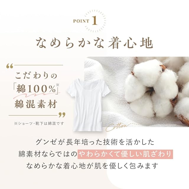 グンゼが誇るロングセラー素材。上質なアメリカ綿を使用し、独自の社内基準で厳選した綿糸を使用しました。