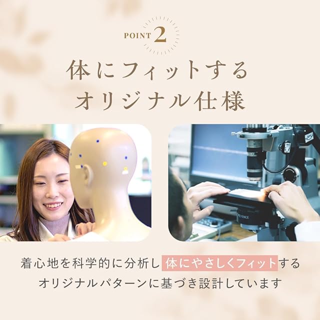 肌に優しい綿100%素材。天然素材ならではの柔らくてやさしい肌触り、滑らかな着心地が肌を包みます。抗菌防臭加工を施しています。