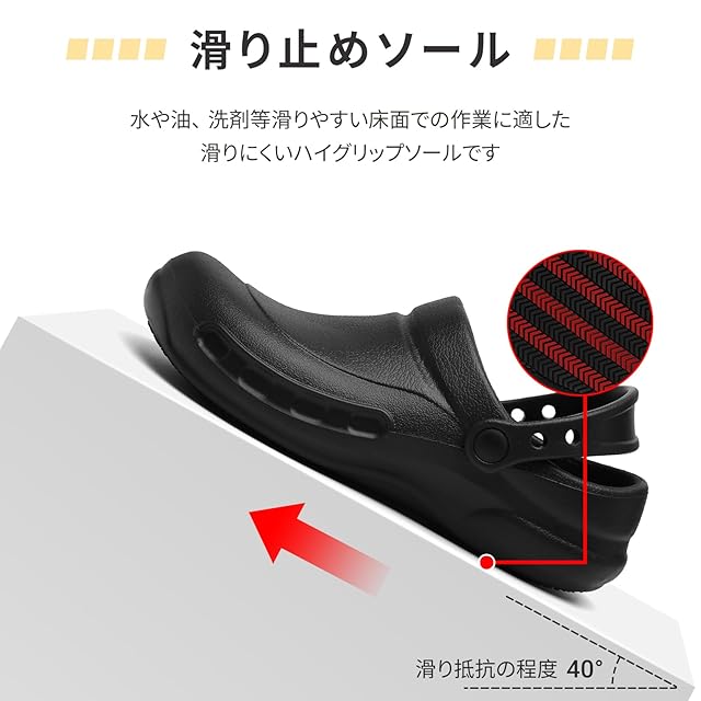 ■滑りにくい:定番のキッチンシューズで、通気性、軽量性、耐久性に優れている。滑りにくいラバー底が付いている