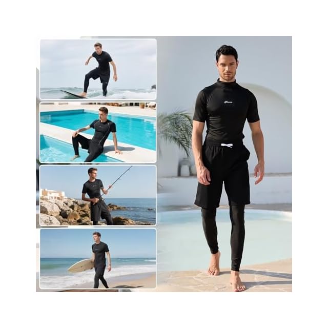 多用途機能セット:半袖ラッシュ Tシャツ、サーフパンツ、ラッシュレギンスの 3 点セットは、水陸両用ができます。プールでのレクリエーション、海でのサーフィンやボディーボード、陸上のウォーキングやジョギングなど、さまざまなアクティビティに対応できます。