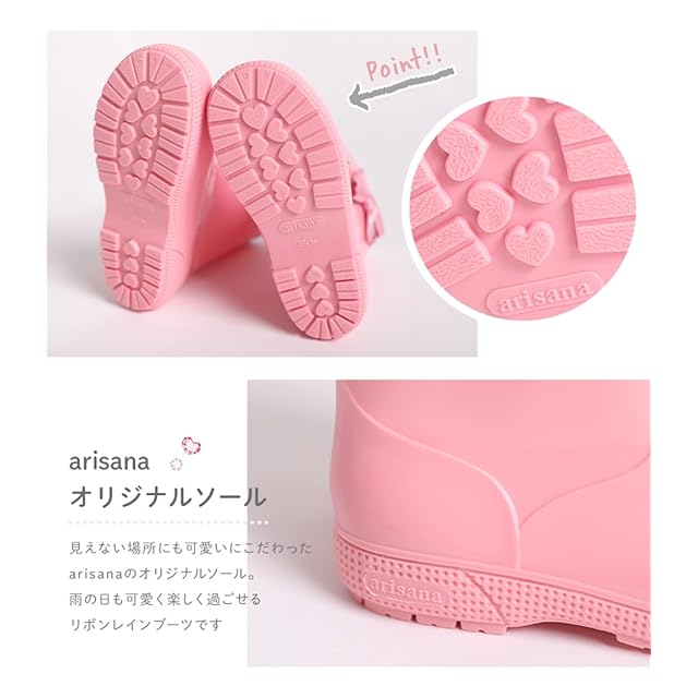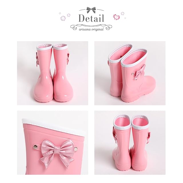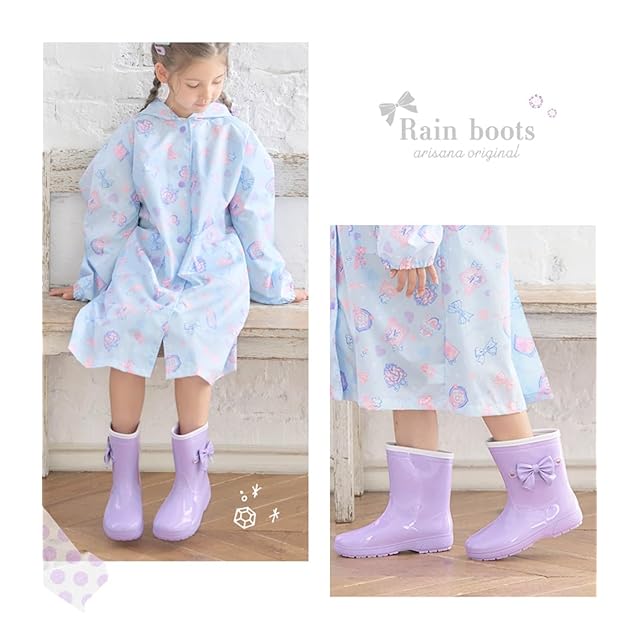 [アリサナ] レインブーツ リボン キッズ 女の子 ラベンダー 18cm