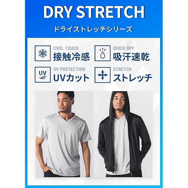 【接触冷感機能】肌に触れた時に冷やっと感じる接触冷感素材を使用。衣服内の熱気を逃すため夏場にも最適です。