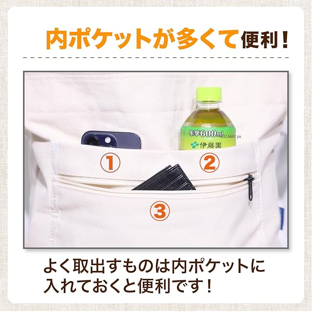 ✅【安心のYKKファスナー】バッグ上部に付いたファスナーで中身をしっかり守ります。電車や人混みでの防犯対策はもちろん、雨の日の水濡れ防止にも効果的。荷物をこぼす心配がなく、貴重品も安心して持ち運べます。またスムーズに開閉できるYKK製ファスナーは使い勝手も抜群で、急いでいるときでもストレスなく使えます。