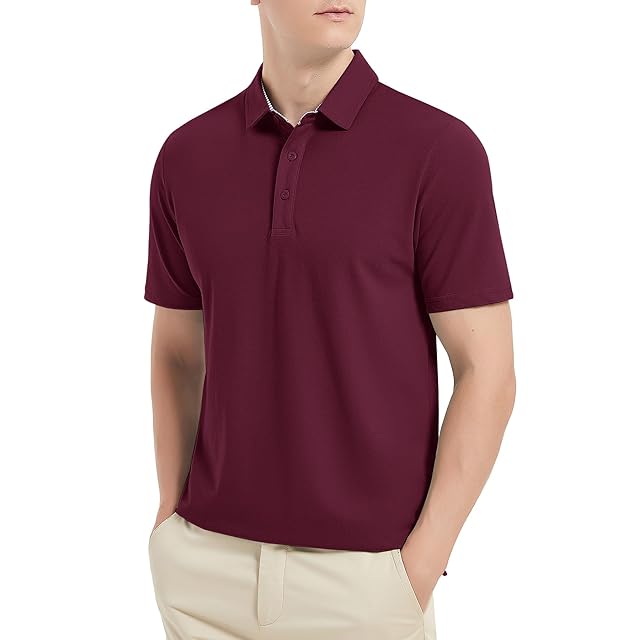 [KEFITEVD] 襟付きシャツ メンズ 半袖 ボタンダウン 綿 ポロシャツ ゴルフウェア スポーツ ランニング 夏服 無地 速乾tシャツ 作業着 通気 ビジポロ ワインレッド 4XL
