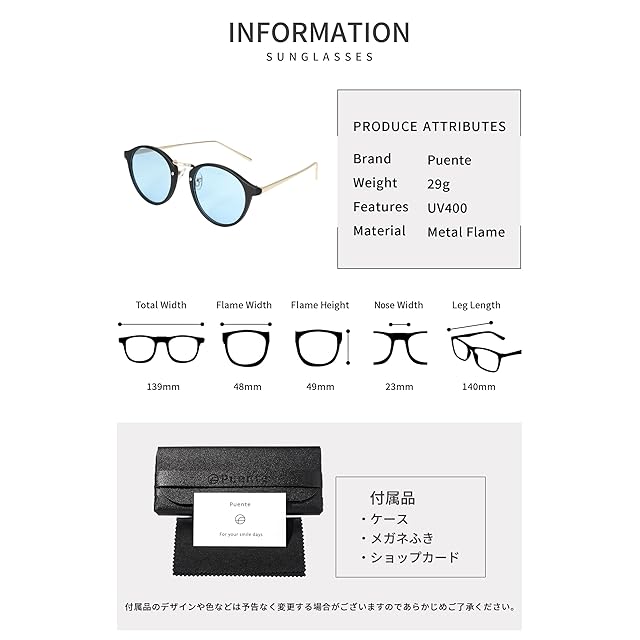 【商品サイズ】レンズ幅48mm/ブリッジ幅23mm/テンプル長さ140mm/フロント幅139mm/高さ49mm