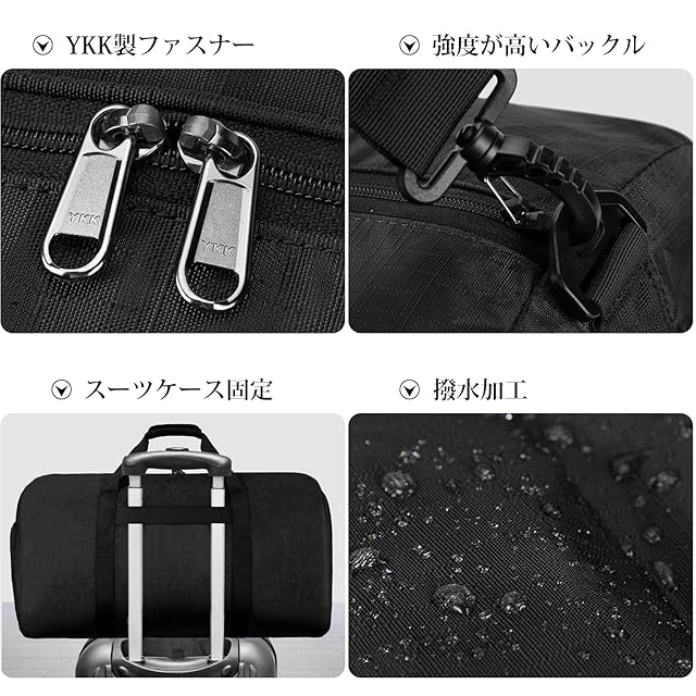 折りたたみバッグ ボストンバッグ メンズ 大容量 YKKファスナー 修学旅行 旅行バッグ トラベルバッグ スポーツバッグ 5色 40L 65L 80L 斜め掛け スーツケース固定 靴収納ポケット 撥水加工 軽量 ジムバッグ 出張 black-40L