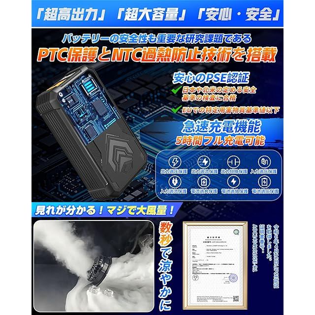 【20000mAh大容量&安心のPSE認証済み】国内大手電力会社と共同開発した最新チップを採用し、安全性・信頼性を徹底追求。過熱、過電流、短絡などを防ぐ6重保護機能を搭載し、火災リスクも最小限に。20000mAhの超大容量により、使用時間が大幅に向上。「最低モード」で約26時間、「12V」最大風量でも約12時間の連続使用が可能。充電も約5時間でフル充電可能です。長時間作業でも安心してお使いいただけます。