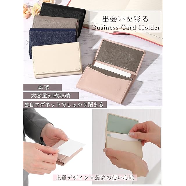 [honey&blue] 名刺入れ レディース 本革 【マグネット付しっかり閉まる】 薄型 大容量 (50枚収納)汚れに強い おしゃれなバイカラー 名刺ケース 名刺ホルダー カードケース (グレージュ)