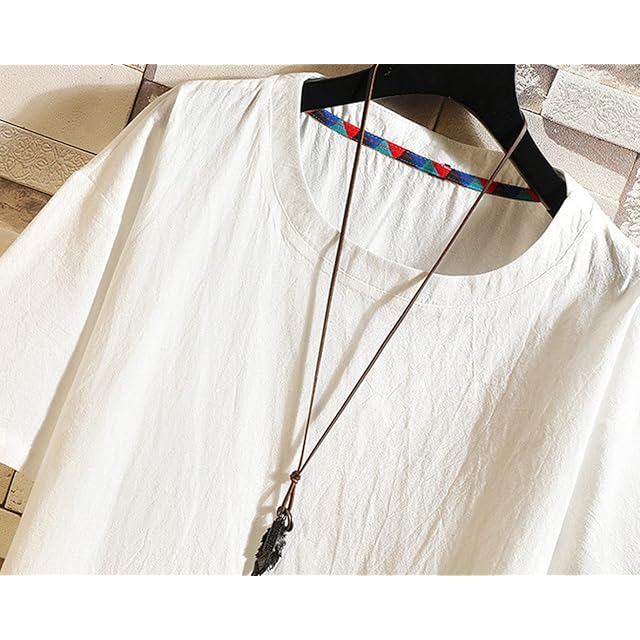 [JHIJSC] メンズ tシャツ 半袖 無地 夏 薄手 ゆったり 綿麻 おしゃれ 大きいサイズ (L, ホワイト)