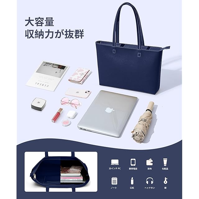 【優質材質】トートバッグはクラシックなカラーとシンプルなラインが完璧に融合し、ビジネスとファッションを表現します。こだわりのPUレザー素材を採用して、質感繊細で柔らかいです。優れ防水性を持つ、雨が遭ってもバッグ中の貴重品がしっかりと守れます。