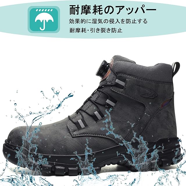 [COOU] 安全靴 防水 メンズ ワークブーツ 作業靴 ハイカット あんぜんぐつ 軽量 ダイヤル 鋼先芯 セーフティシューズ グレー 24CM
