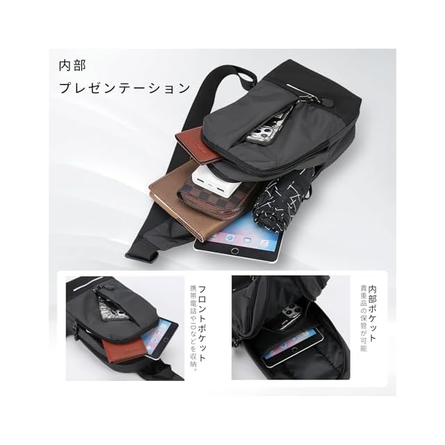 『さまざまなシーンで便利に使用』このボディバッグ メンズは、大容量の収納スペースを備えており、通勤や旅行に最適です。メインコンパートメントには財布、スマートフォン、タブレット、鍵など、日常的に使用するアイテムをすっきりと整理できます。さらに、追加のポケットで小物の収納も便利です。