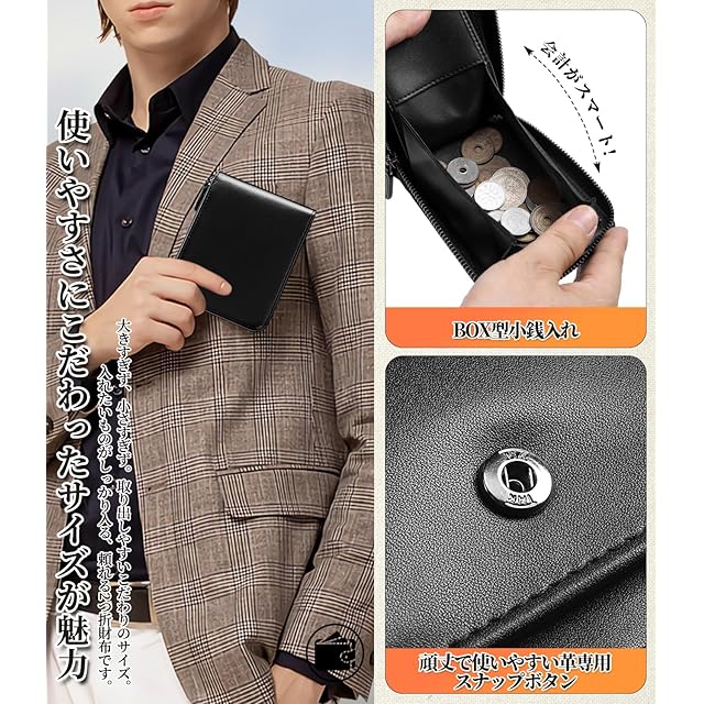 『使いやすいデザイン』✅ BOX型の小銭入れは、ひと目で小銭を判別しやすいのでコンビニのレジでもアタフタしない!会計がスマート✅よく使うカードや紙幣をスムーズに取り出せるように一段目を区切り✅ スキミング防止機能と磁気防止機能により、電子マネーとカードの貴重な個人情報を保護できるので、安心してご使用いただけます。