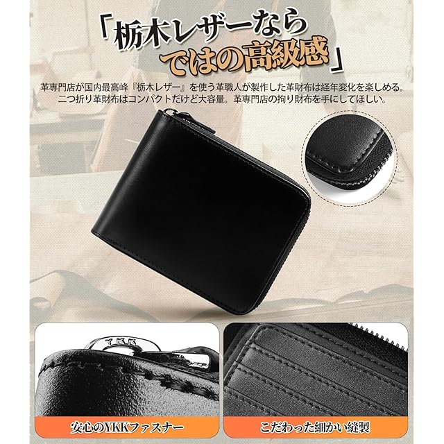 財布 メンズ 2つ折り 日本栃木 レザー 二つ折り財布 YKK ラウンドファスナー 一流の革職人が作る 折り財布 BOX型小銭入 スキミング防止 ふたつおり 折りたたみ財布 本革 薄型 厚くならない 父の日 一粒万倍日 天赦日 虎の日(新モデル)