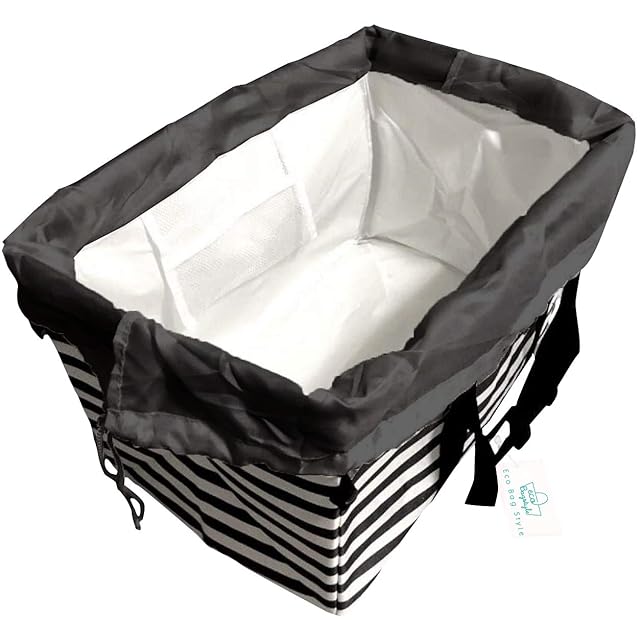 エコバッグスタイル レジカゴ対応 エコバッグ 保冷バッグ 自立型 34L 大容量 折りたたみ 保冷保温 はっ水 ストライプブラック(巾着黒)