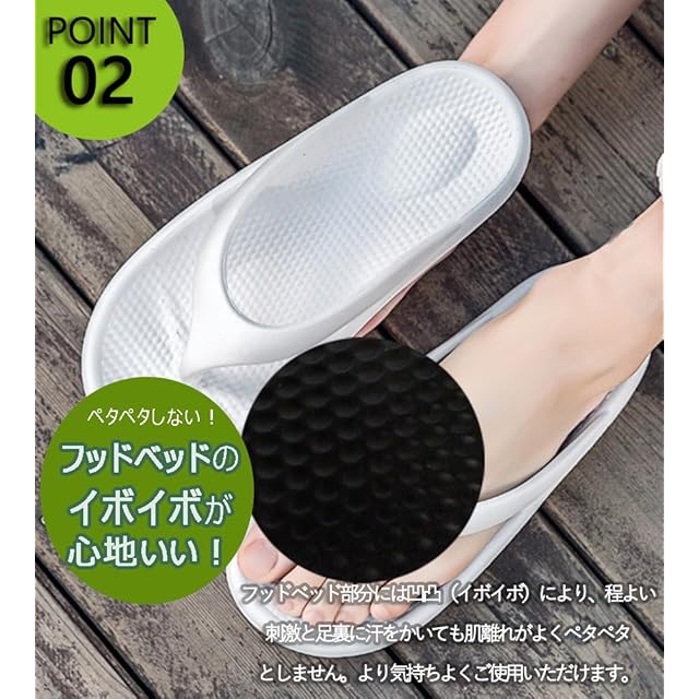【ペタペタしない】フッドベッド部分には凹凸(イボイボ)により、程よい刺激と足裏に汗をかいても肌離れがよくペタペタとしません。より気持ちよくご使用いただけます。