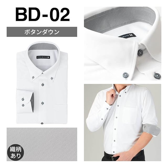 [アトリエ365] ワイシャツ 長袖 メンズ ニットシャツ ノーアイロン 形態安定 ビジカジ ビジネスシャツ ポロシャツ/at-ml-set-1174-ats-M-39-nd8-b-23ss