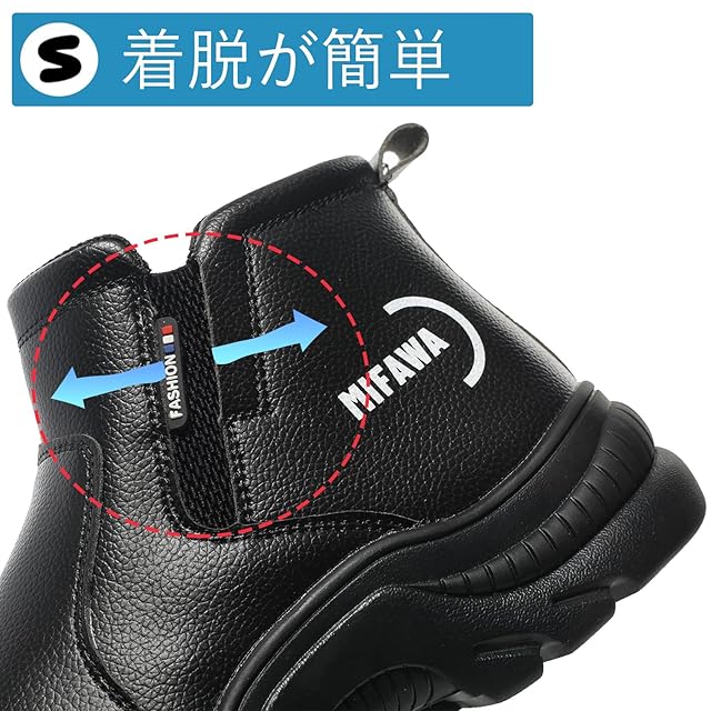 【安全性能】鋼先芯:つま先部分に鋼製の先芯を入れた、作業中の意外発生時の硬物の衝撃、利器の落下が有効に防衛できます。金槌や刃物などからつま先を保護できます。突き刺し耐性のあるソール:ケブラー 繊維ミッドソールも入れた、釘などの鋭いものから足裏を守ります。