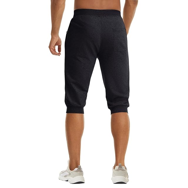 7分丈パンツ メンズ スポーツ ジャージ ハーフパンツ トレーニングウェア フィットネス 筋トレ 半ズボン クロップドパンツ ラーニング 黒 ブラック JP XL